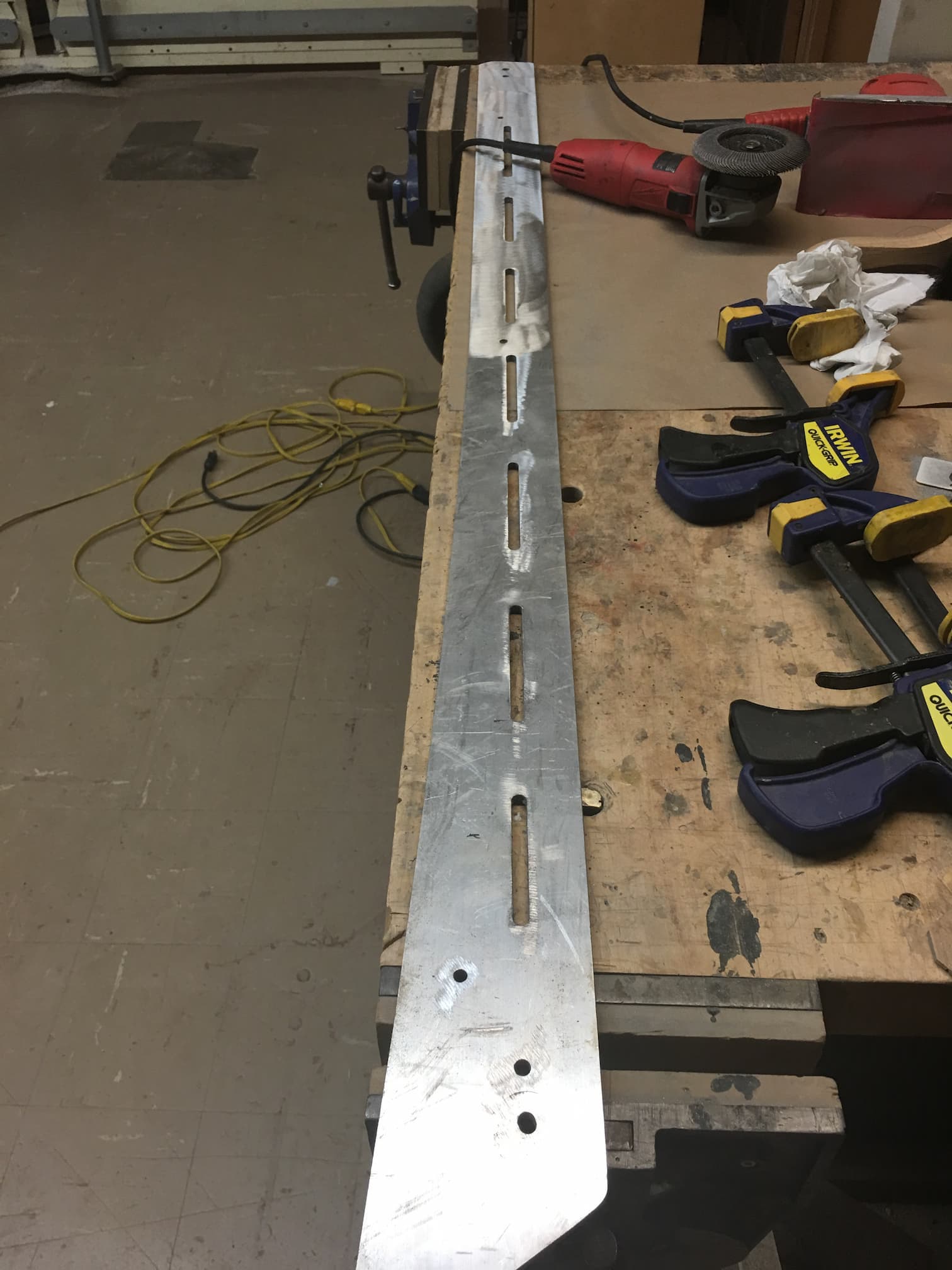In order to ensure the slots matched perfectly on both sides, I first drilled out the front and rear holes then bolted the panels together so I could cut through both at once.