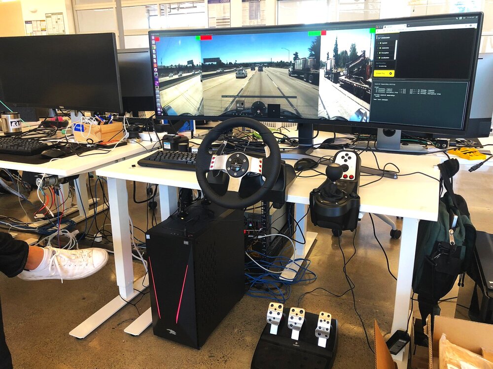 Our initial functioning prototype utilized various configurations of steering and pedal controls made for racing simulators/video games, paired with an ultra-wide monitor streaming live camera feeds from around the car. Through countless hours of live testing and studying user behaviors, we indentified a critical shortcoming in the setup - it just didn't feel "real" enough. The disconnect between controlling a big and heavy moving vehicle and driving one from afar with toy-like controls was significant. It was clear that a proper teleassist experience had to more closely mimic that of real life driving.